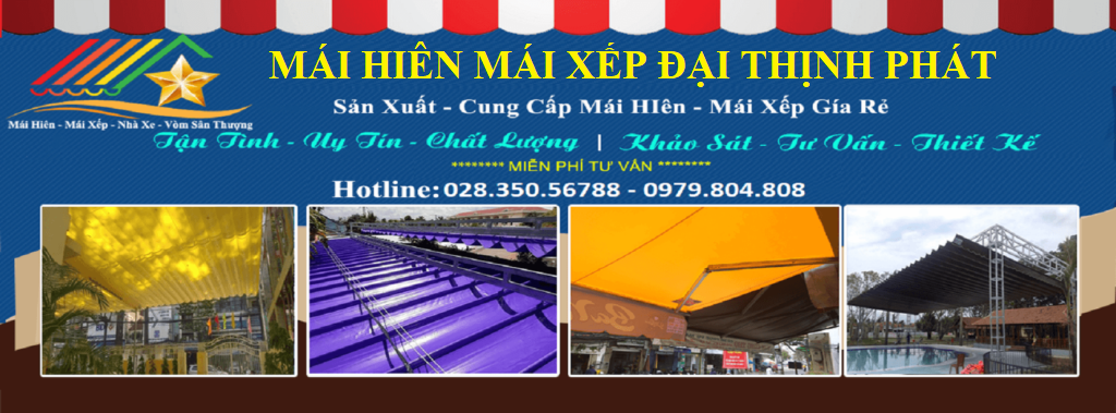 Đại Thịnh Phát chuyên cung cấp sản phẩm trọn gói từ thiết kế đến thi công mái hiên di động, mái xếp lượn sóng, mái kéo, mái vòm thẩm mỹ, mái hiên chữ A , bạt thả.